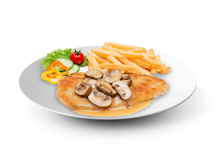 Crème de truffe, champignons ,escalope de poulet + Servie avec frites ou pâtes.